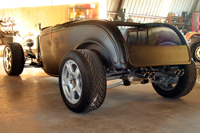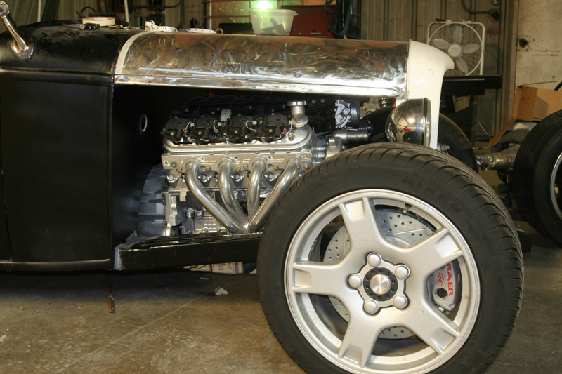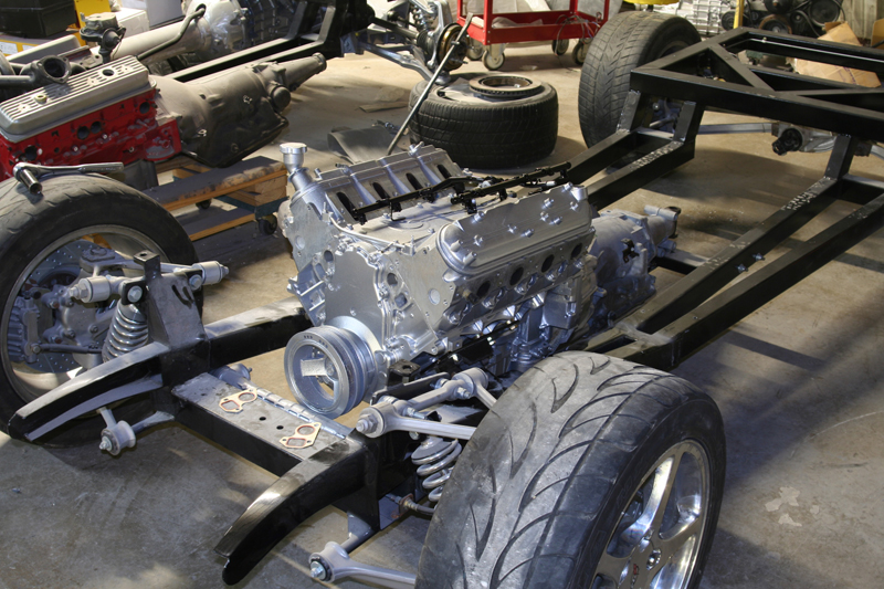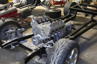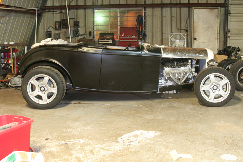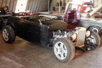 Larry’s roadster is finally running. With every delay imaginable, dead fuel pumps, bad relays and a fight with the alternator the little LS powered roadster is out and about. In the next week we’ll be getting the suspension aligned and start some tuning on the motor to make sure the transmission shift points will work properly on this light car. As she sits the little roadster weighs in at 1934lbs with no driver and a full tank of gas. We’re waiting on a few executive decisions from the owner on gauges and rear tail lights. Check back soon