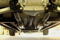 Larry’s roadster is is back from Seguen Drive Line and Muffler with a mean set of Corvette twin tipped exhaust with a full dual all the way back Next off to paint