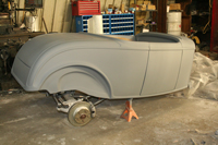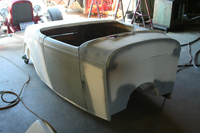 Larry's roadster returned from its trip to the body guy and after 6 months the top 3 photos are what we got back. We stared beating on it and after 3 weeks the car now looks like the final 3 with the 2 in the middle showing the progress of the body while we worked on it.