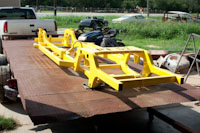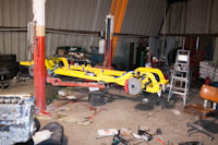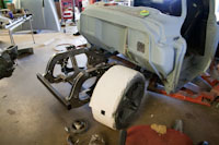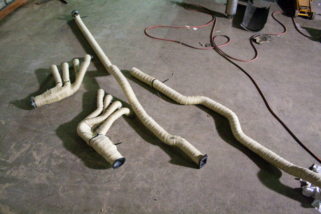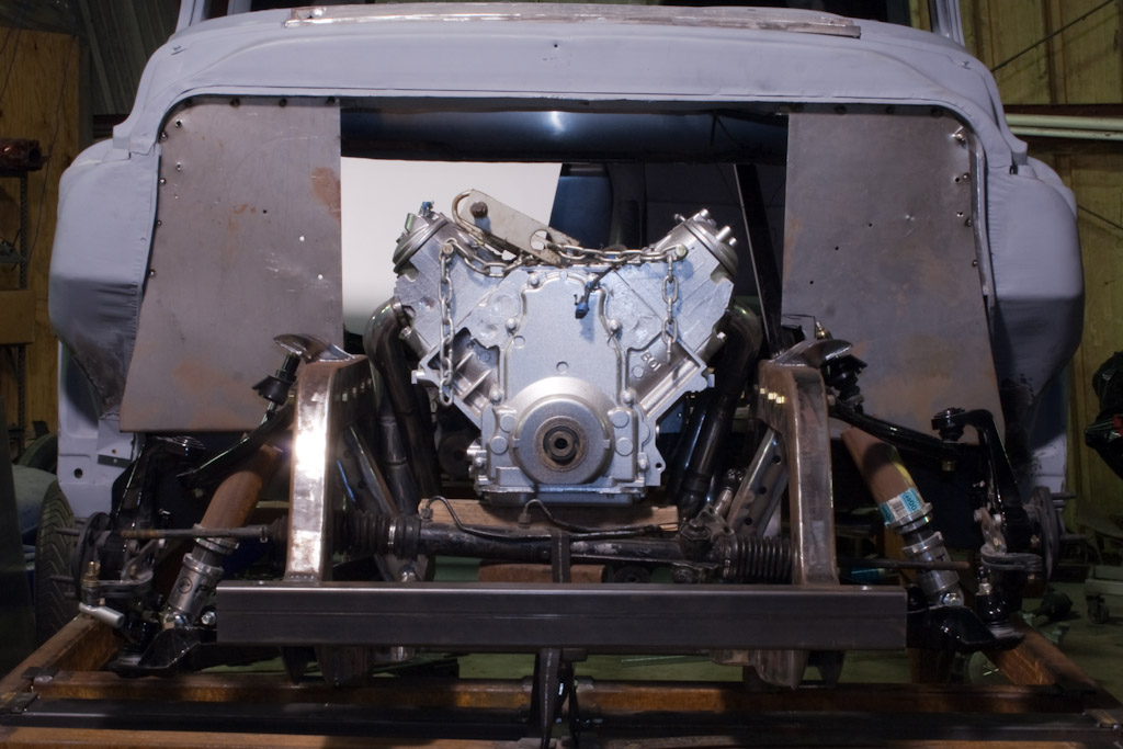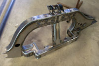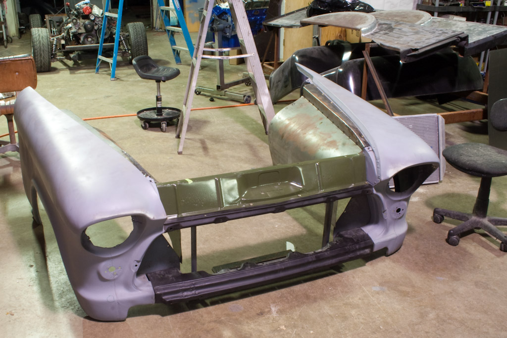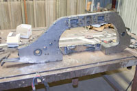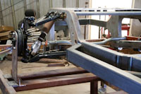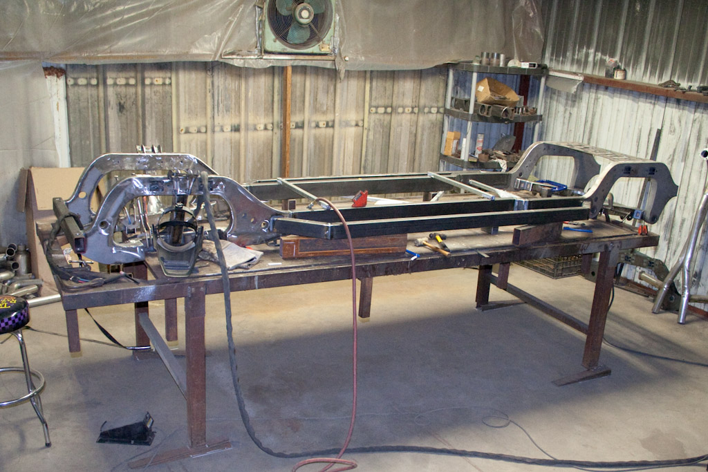 Back onto the jig table for driveline angling, exhaust and sheet metal work.