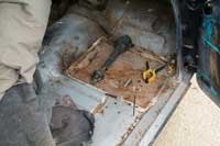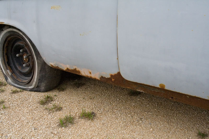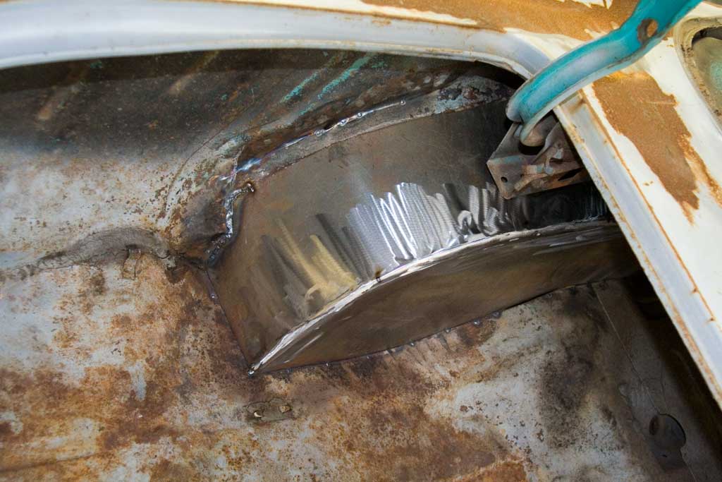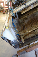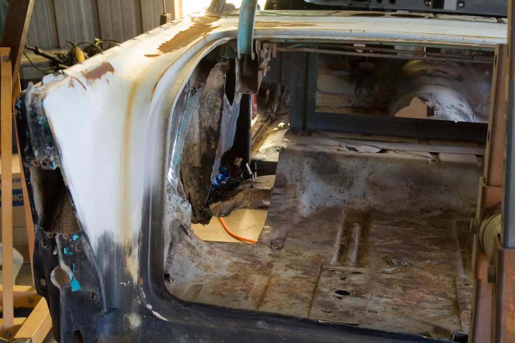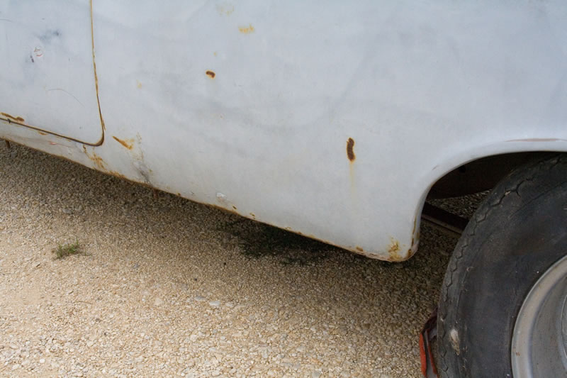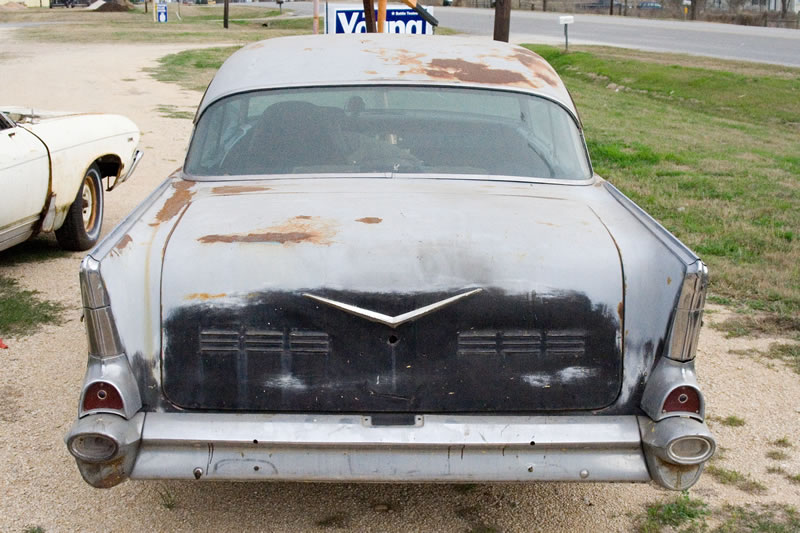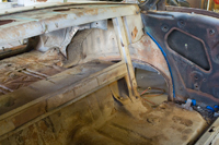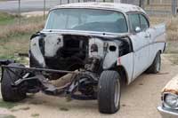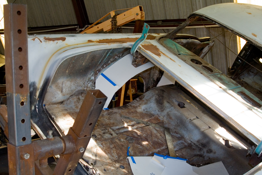 The Body of our 57 came from a gentleman who had had the car for more than 30 years. The car had moved from indoor storage to indoor storage and only spending minimal amounts of time outside. So when he decided he wanted to sell it we jumped on that deal like a fly on stink. So here’s the starting point for Project Metteor. They had tried to do a flip front end and it didn’t work out like they had planed so we’ll be converting it back into a traditional flip hood. We’ll be steeling the front end from one of our donor 57’s.