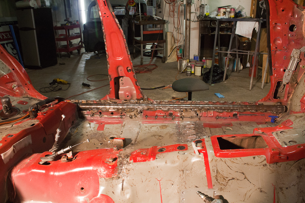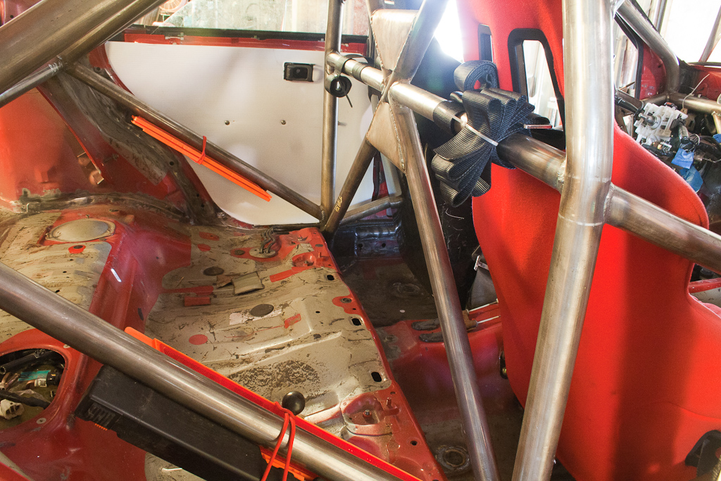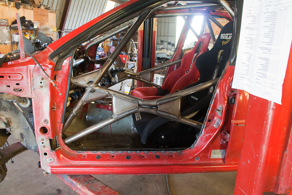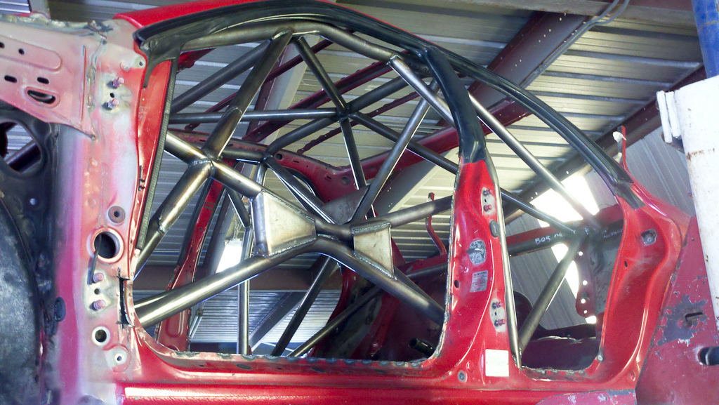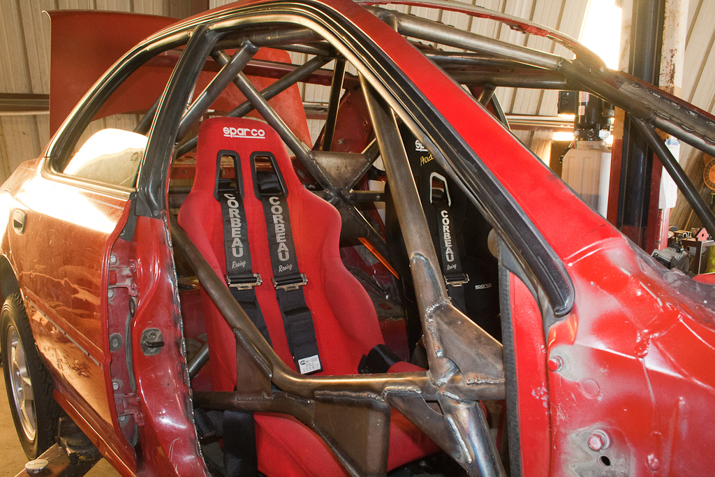 Labor, Material and Pricing The customer supplied this 1995 Subaru Impreza 4 door Sedan fully stripped of the doors, trunk, front clip, dash, electrical, drive train, fuel lines, brake line and removed the roof skin. The suspension was left for mobility purposes. The shop with the help of the owned ground out the seams and prepared the body for seam welding. Hot Rod Jim’s designed the roll cage with measurements from the body, fabricated and installed the roll cage. The cage is made from DOM 1020 and MIG welded with reinforcement plates installed on the upper strut towers front and rear to take the abuse of the jumps associated with Rally and the owners affinity to take every crest WOT. If the owner did not supply her own labor for cleaning the seams for welding (Brianne works part time for Hot Rod Jim’s) this cage and work would cost $5,000.00. If you’re building a Rally car requiring the FIA cage expect to be close to the same price. |