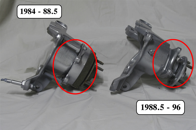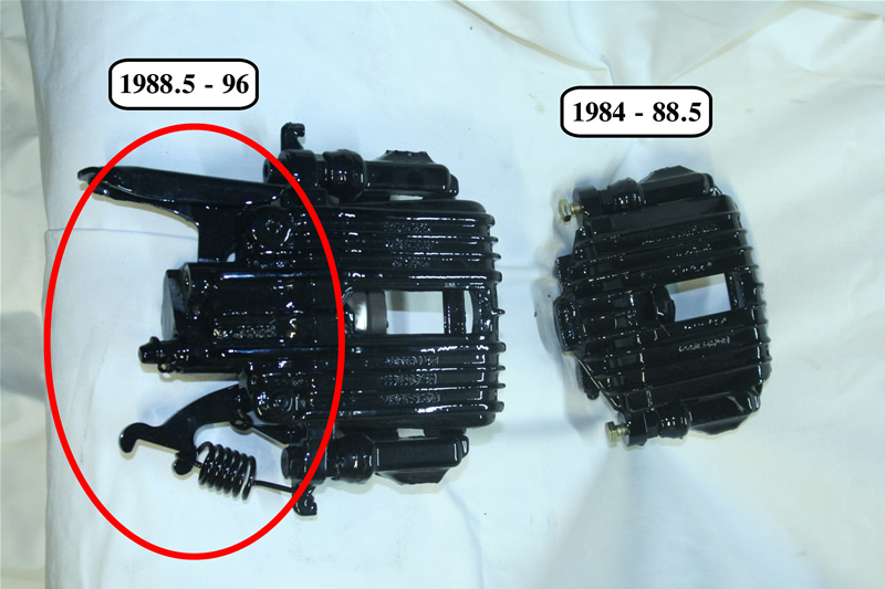 The easiest way is by the rear suspension. The rear calipers on the early corvettes (1984-88 ½) had a drum style e brake with the mechanism built into the knuckle (see figure 2). The Later model 1988-96 had the e brake built into the caliper (see figure 1).