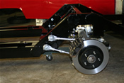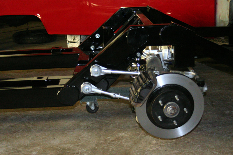 With the two types of Corvette Suspensions, the early 1984-88.5 and the 1988-96 Hot Rod Jim offers the choice of running gear as an option. We traditionally use the early model corvette suspensions for our standard chassis. The early model works very well for a retro-mod that the owner wants to look as stock as possible. The suspensions is narrower and will only require a minor offset for the stock rims to clear as we’ll as slightly smaller disk brakes that only need 18 inch rims to clear the caliper. The later model suspensions have a wider suspension and lager brakes standard. The wider stance and larger brakes make for a better handling car but you are required to run a steep offset and need a minim of 17 inch rims to clear the suspension. We up grade all of our late model suspension to the 96 Grand Sport calipers that have the corvette logos.